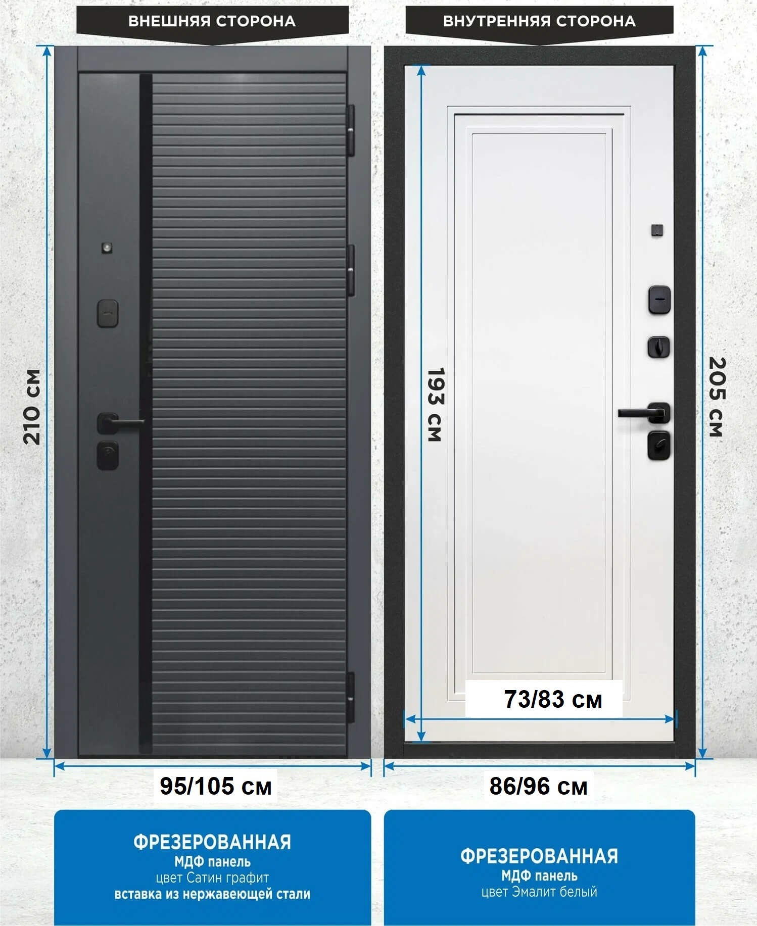 Входная дверь 10 см 2 МДФ (Букле Графит/ Эмалит Белый)
