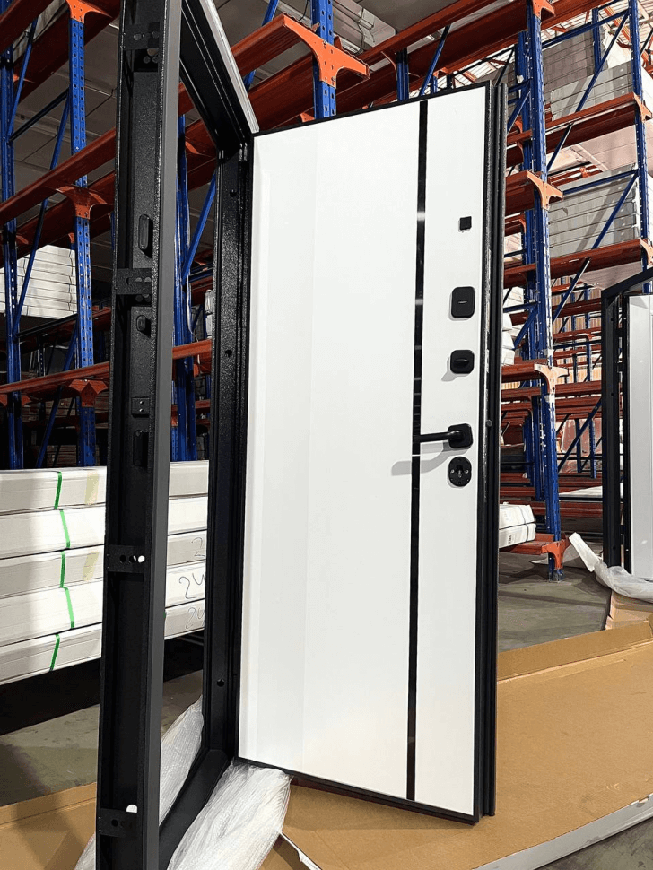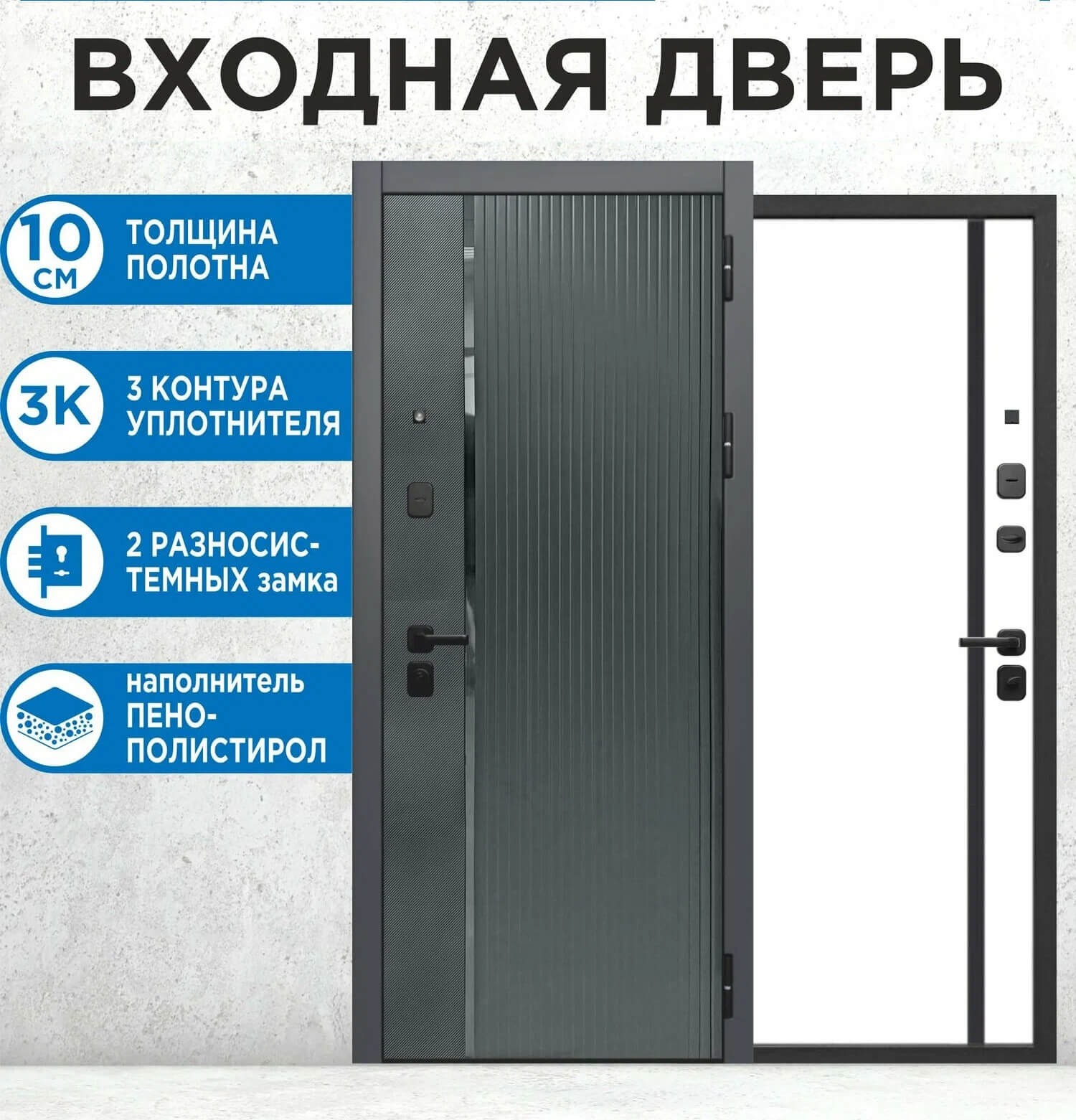 Входная дверь 10 см 2 МДФ Карбон (Букле Графит/ Эмалит Белый)