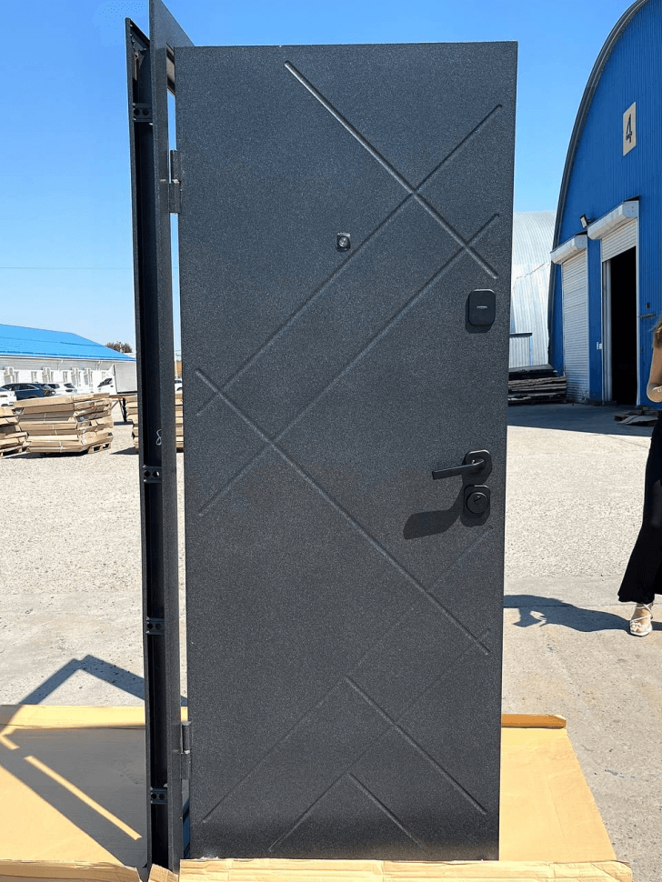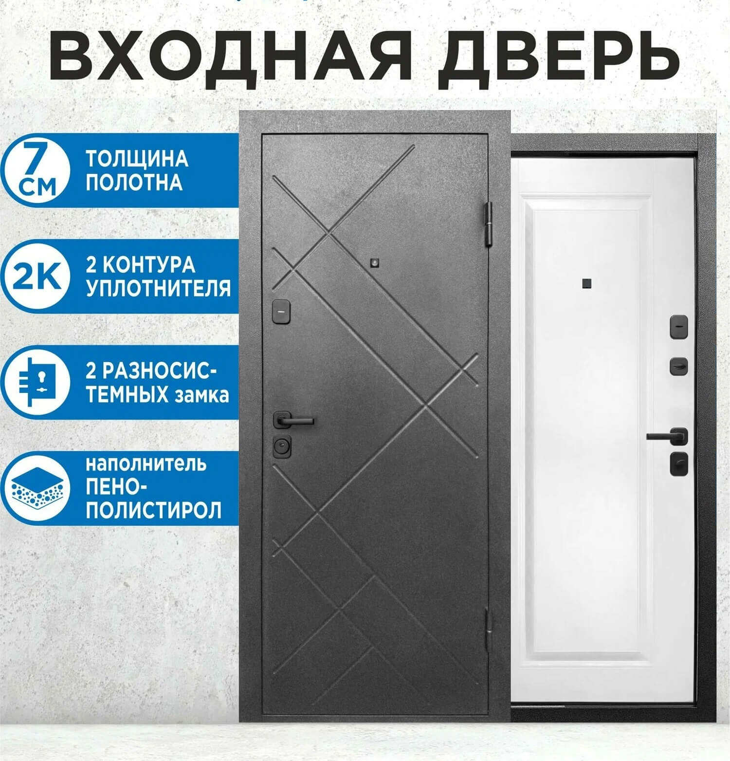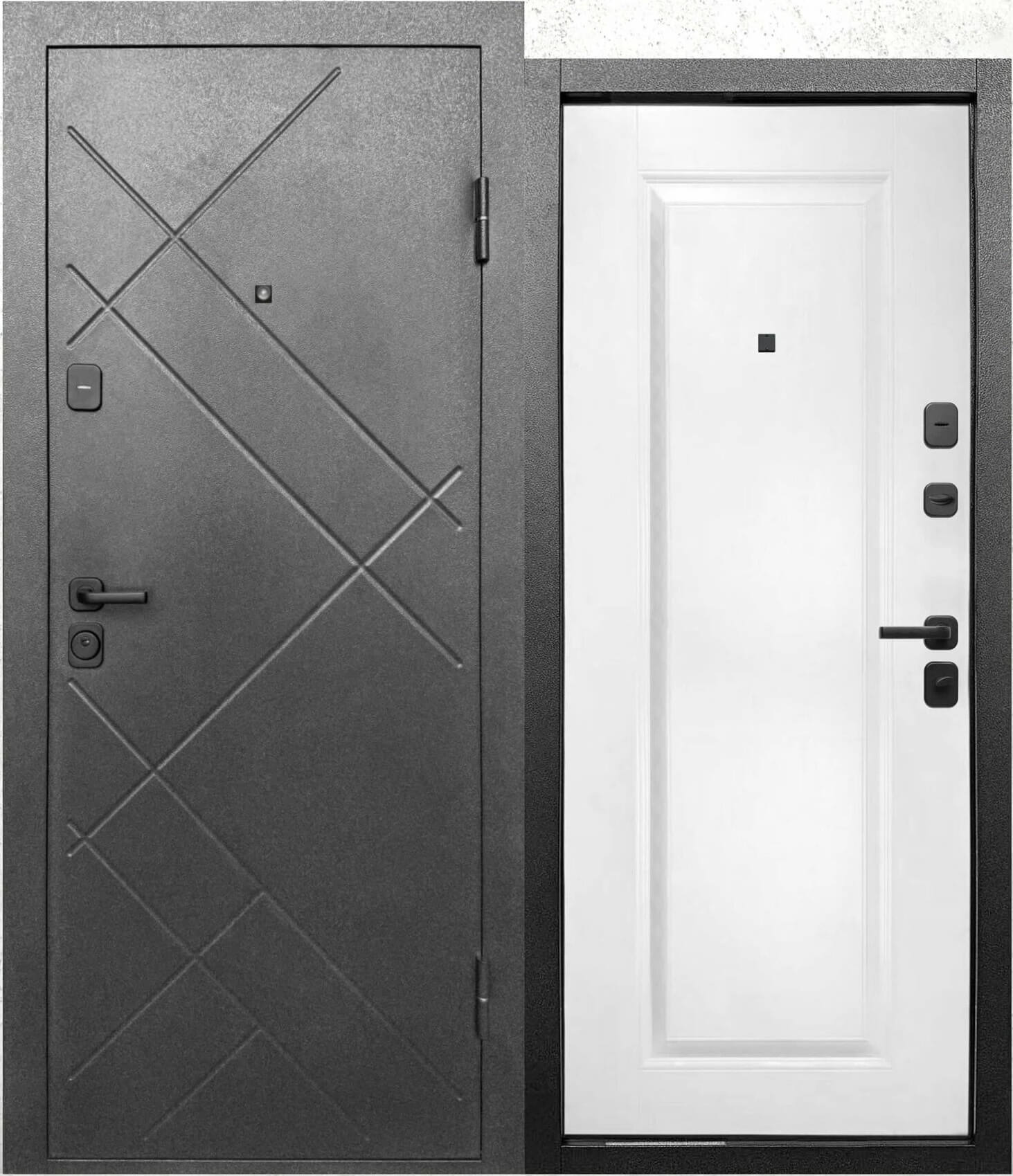 Входная дверь 7 Штамп (Букле Графит/ Эмалит Белый)