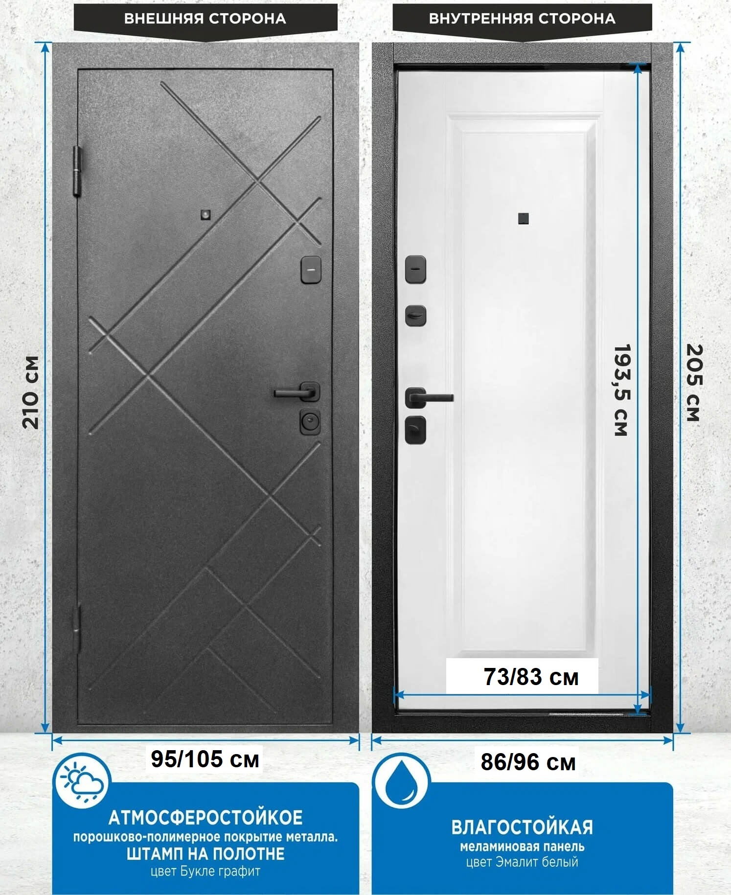 Входная дверь 7 Штамп (Букле Графит/ Эмалит Белый)