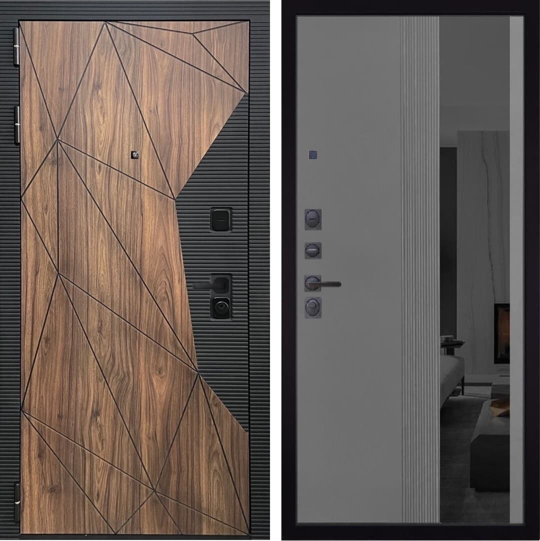 Входная дверь ГРАНИТ Континент-86 Зеркало черное (ПВХ Серый софт)