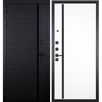 Снаружи дверь имеет красивую внешнюю декоративную панель, которую эстетично дополняют МДФ-наличники в тон панели. Декоративная накладка с логотипом двери, как защита от подделок, расположена на торце дверного полотна.