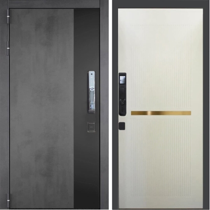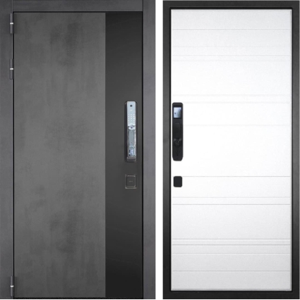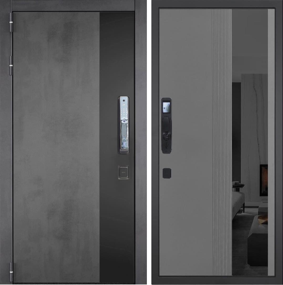 Входная дверь ГРАНИТ Роял СМАРТ-86 Зеркало черное (ПВХ Серый софт)