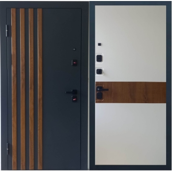 Входная дверь с терморазрывом Крафт ТермоПро (Муар графит-ПВХ Дуб Вотан/ ПВХ Белый- Дуб Вотан)