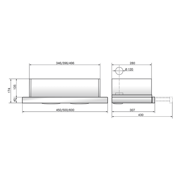 Вытяжка кухонная, встраиваемая, телескопическая.