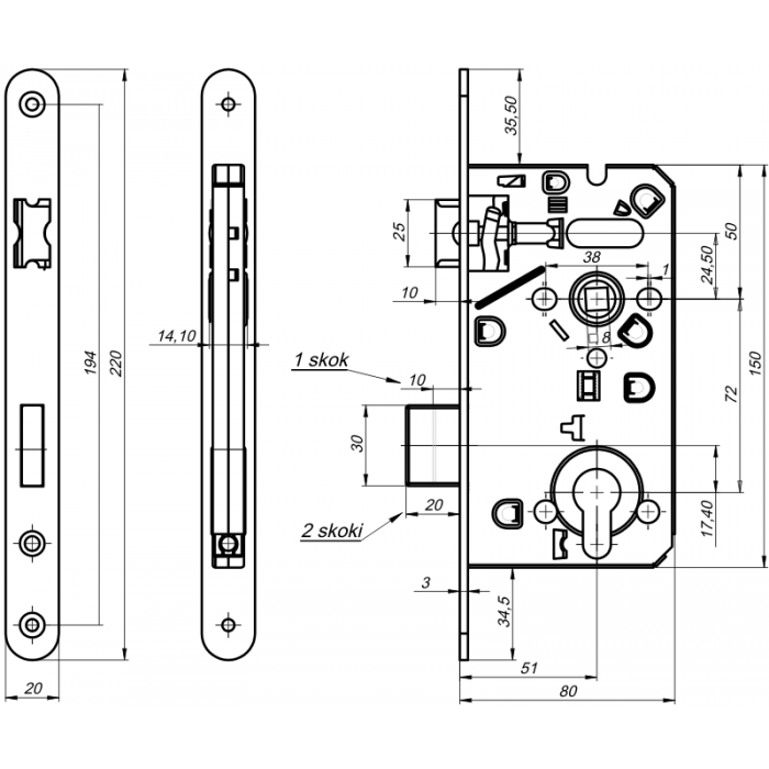 Замок врезной с цилиндром кл/ верт 7504/72-ZC (Хром)