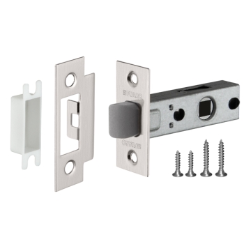 Классические защёлки с металлическим язычком без фиксации. Предназначены для межкомнатных дверей без дополнительного запирания. 200 000 циклов безотказной работы. Угол нажатия ручки: 50 градусов. Устанавливаются в межкомнатные деревянные двери совместно с дверными ручками.